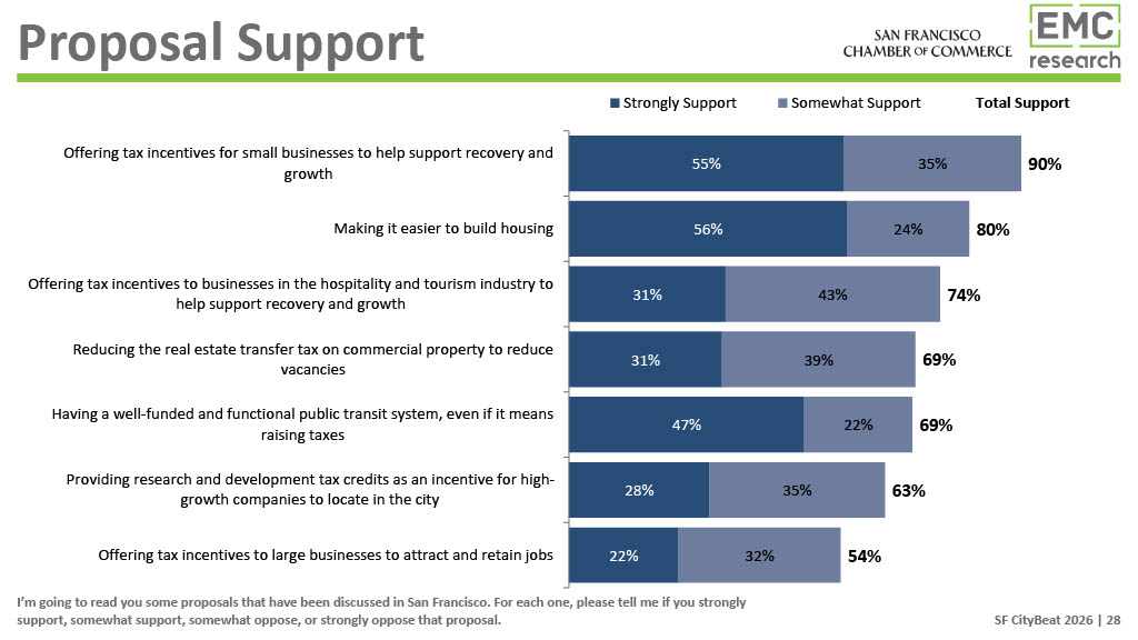 - 74% say attracting and retaining large businesses is important to San Francisco’s future